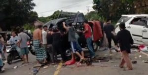 Lampura,sinarpagiindonesia.com –Sembilan orang luka-luka dan 1 orang meninggal dunia setelah kejadian laka lantas antara minibus Toyota Rush warna putih Nopol BG 1583 DP Dengan pick up Suzuki carry No Pol BE 8144 AMH, di Jalan Lintas Tengah Sumatera desa suka marga Kecamatan Abung Tinggi Kabupaten Lampung Utara, Sabtu, 13 April 2024 sekira Pukul 09.45 Wib.