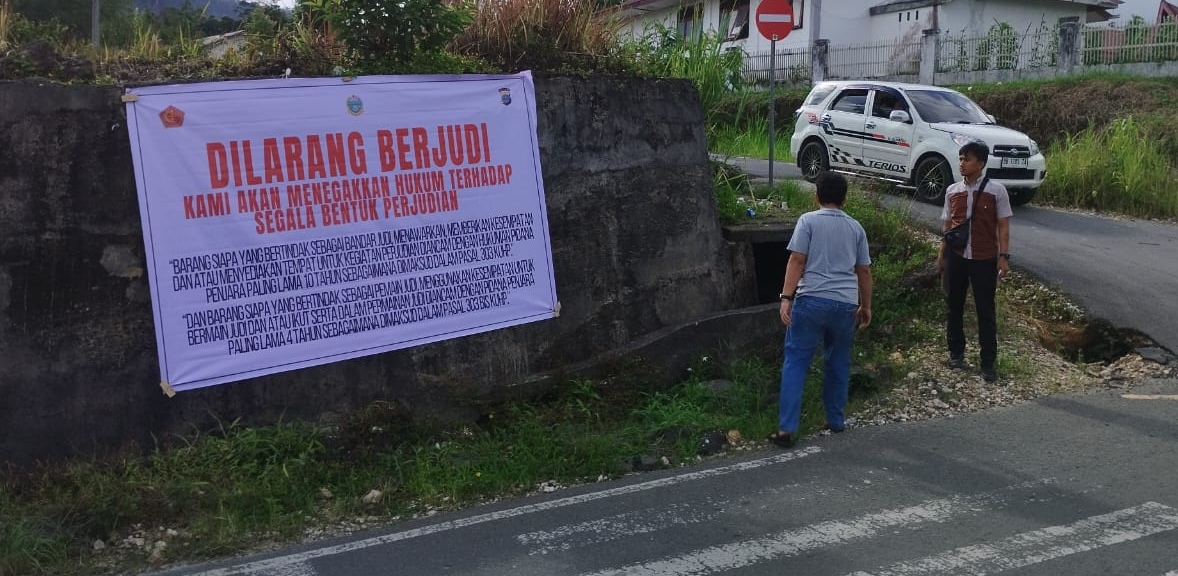Polres Pakpak Bharat Pasang Spanduk Himbau Kepada Warga Agar Tidak Berjudi