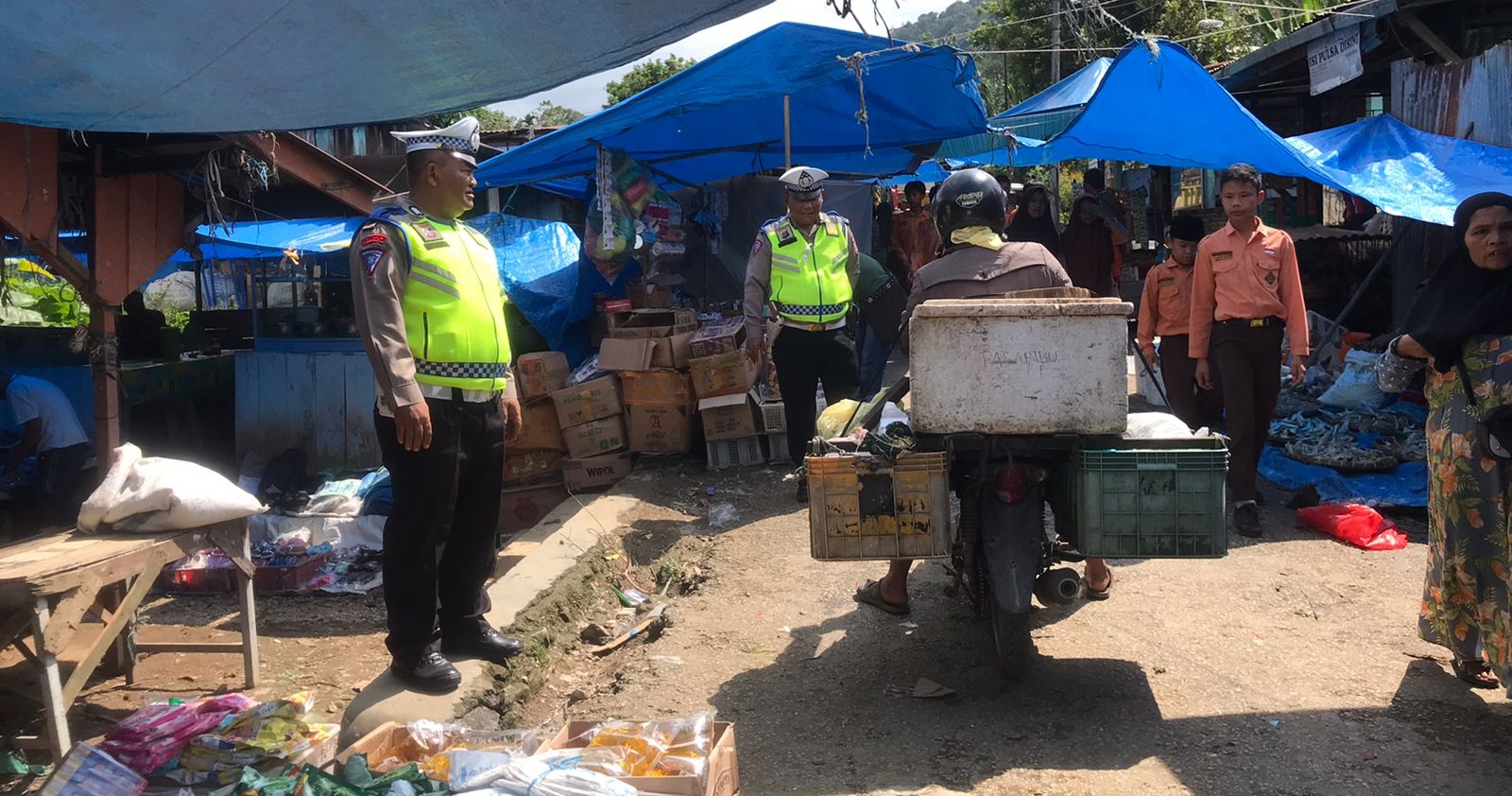 Pakpak Bharat,sinarpagiindonesia.com –Kapolres Pakpak Bharat AKBP Bambang C Utomo, S.H., S.I.K., M.Si Melalui Personil Pos Satuan Lalu Lintas Sibande Polres Pakpak Bharat Bripka Dolar Tarigan Dan Anggotanya dibawah Pimpinan Kasat Lantas Polres Pakpak Bharat Iptu Aswin Irwan S.H melaksanakan patroli sekaligus gatur lantas di pusat pasar pekan onan Sibande. Rabu (24/04/2024) Sekira pukul 10.00 Wib.