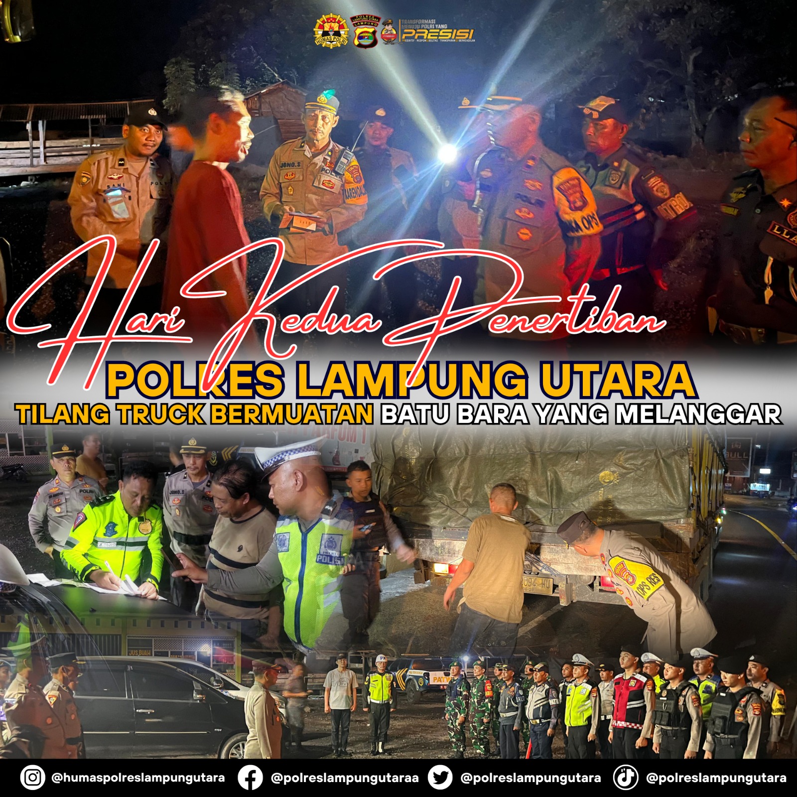 Kapolres Lampung Utara AKBP Teddy Rachesna, S.H., S.I.K., M.Si. menjelaskan, penertiban di hari kedua ini masih kita dapatkan beberapa truk angkutan batu bara yang over loading.