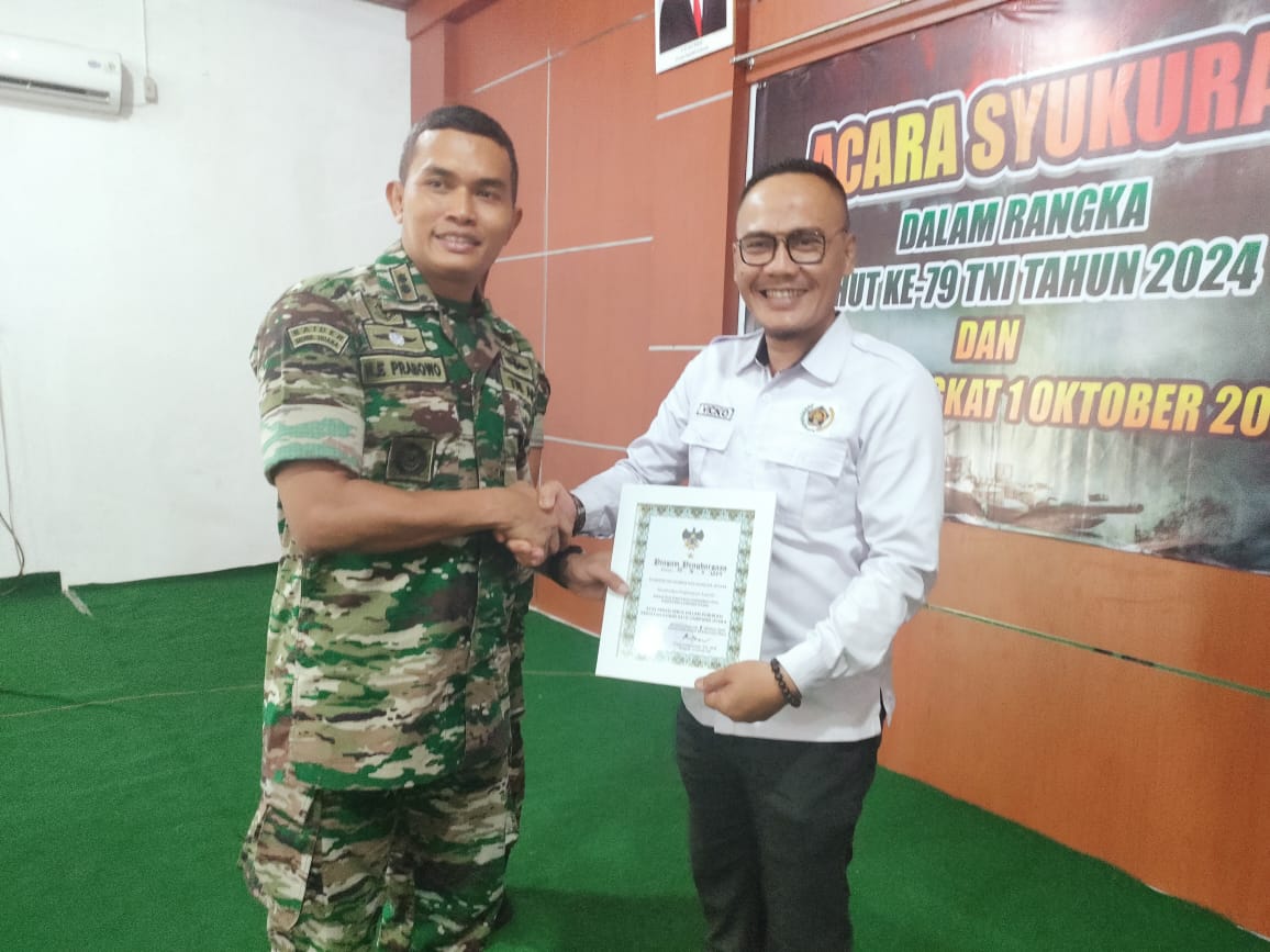 Penyerahan piagam diwakili Komandan Kodim 0412 Letkol Inf Hery Eko Prabowo, dan diterima langsung Ketua PWI Lampura, Evicko Guantara, saat acara syukuran Dalam rangka memperingati Hari Ulang Tahun (HUT) Tentara Nasional Indonesia (TNI) yang ke-79, Sabtu (5/10/2024).