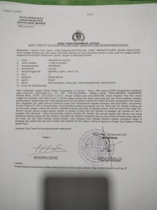 “Saya cuma mau kasih tahu kalau yang pertama kali itu bukan laporan akan tetapi hanya LI aja sudah kami terima pada tanggal 28 DESEMBER 2024 jam 18 49 WIB , Semoga hukum di Indonesia tidak pandang bulu,”