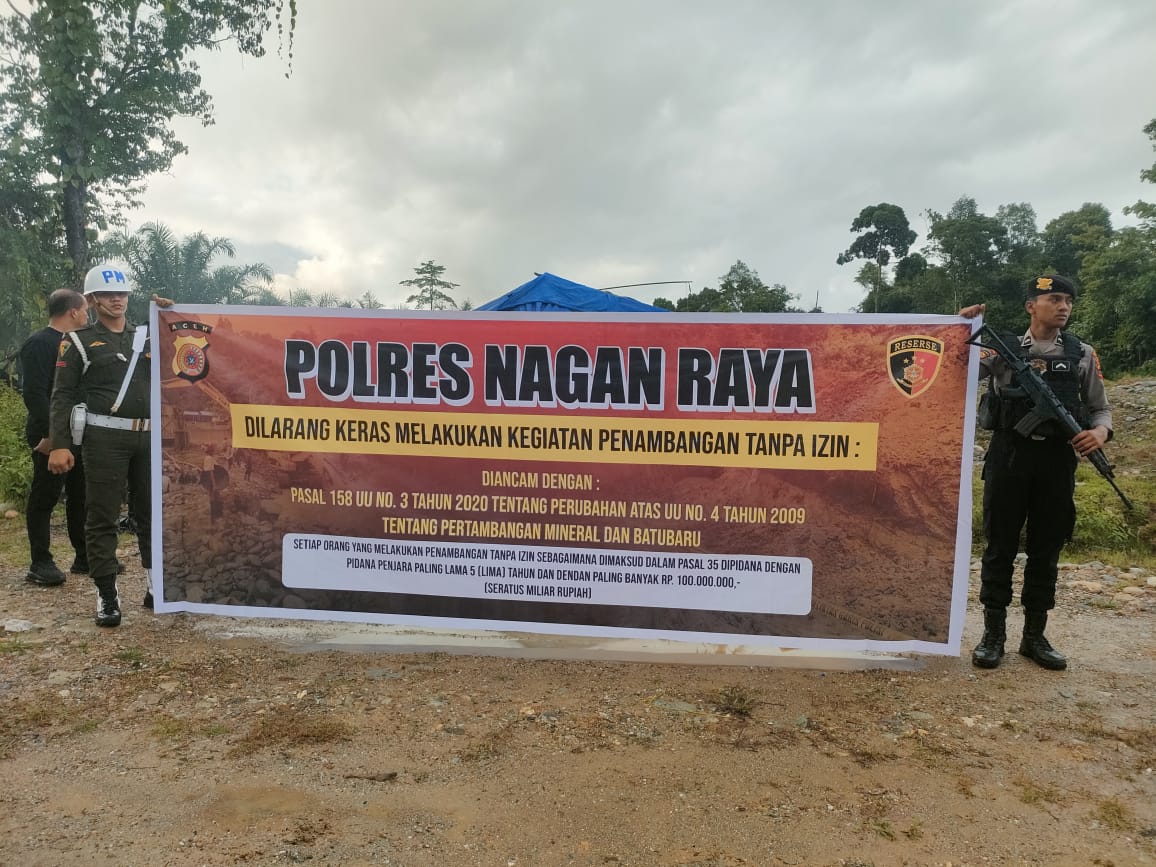 POLRES Nagan Raya menghimbau masarakat agar tidak melakukan tambang tambang ilegal kerena dapat merusak lingkungan dan menyebabkan banjir bandang, “maka Kasat reskrim Vitra Ramadani. SH .M .Si ,menindak tegas dan memasang sepanduk larangan dan membakar barak yang ada di lokasi tersebut.