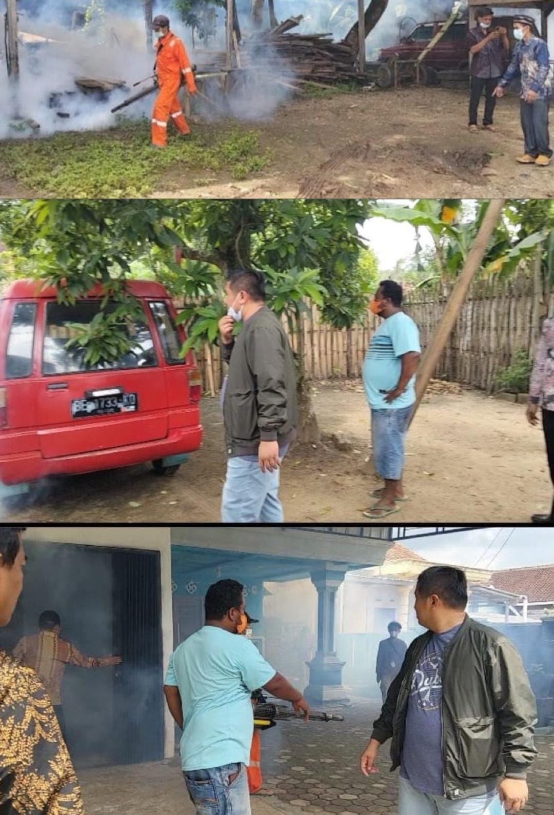 “Melakukan tindakan foging pengasapan di lingkungan rumah-rumah masyarakat, Desa Kembang Tanjung, hari Minggu 19 Januari 2025.