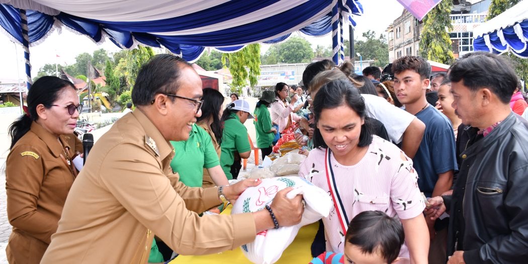 Ratusan warga berkumpul sejak pagi hari, rela menunggu berjam-jam demi mendapatkan beras, minyak goreng, gula pasir serta bahan pokok lainnya yang ditawarkan dengan harga lebih murah dari harga pasaran.