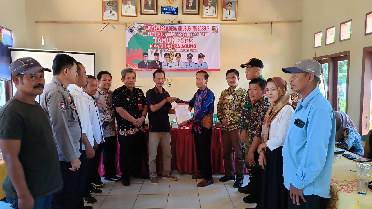 Lampung Utara, www.sinarpagiindonesia.com – Pemerintah Desa Negara Agung Kecamatan Sungkai Jaya menggelar Musyawarah Desa Khusus (Musdes) dalam rangka pembentukan koperasi desa merah putih sesuai dengan pedoman instruksi presiden (inpres) nomor 9 tahun 2025 dan Edaran Kemendesa PDT nomor 6 tahun 2025 serta petunjuk pelaksanaan Kemenkop.