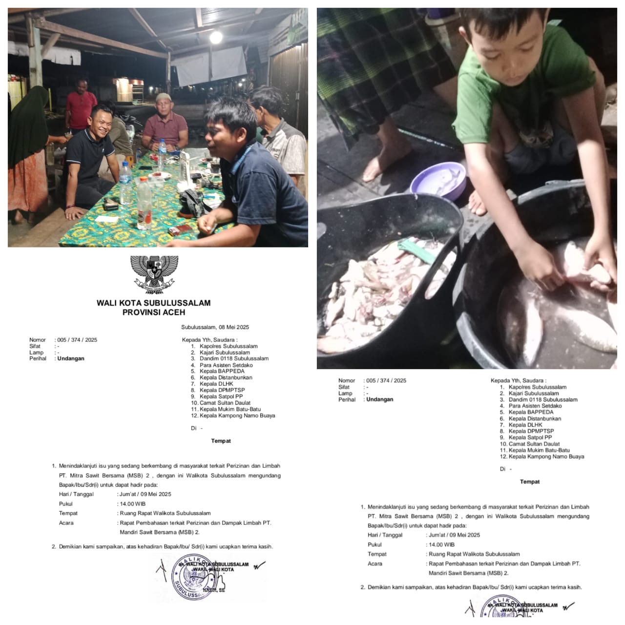 Lebih lanjut Kepala Mukim Binanga Kec. Rundeng, kota Subulussalam itu mengungkapkan masyarakat sudah lelah kemana lagi harus mengadu terkait dugaan pencemaran air itu, ” naifnya kenapa kepala Mukim kemukiman Binanga dan kepala Kepala Kampong Muara Batu-batu tidak di undang oleh Pemko Subulussalam perihal Rapat Pembahasan Terkait Perizinan dan Dampak Limbah PT Mandiri Sawit Bersama ( MBS )2 hari ini Jum’at, 9/5/2025 pukul. 14.00 Wib di Ruang Rapat Walikota Subulussalam;
