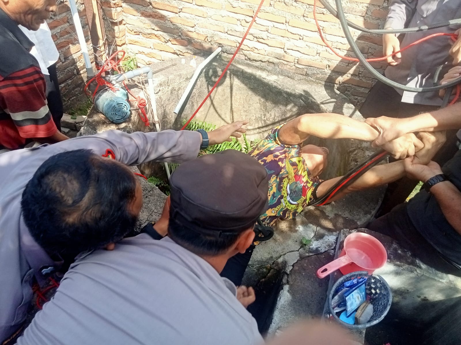 Arifin terjebak di sumur usai tidak sengaja terpeleset saat berusaha membetulkan mesin pompa air.