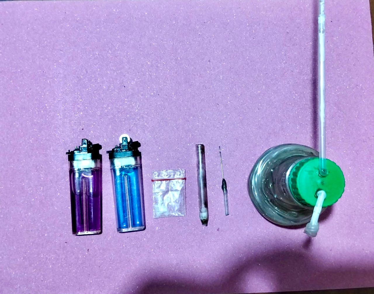 Dari lokasi tersebut, Polisi pun mengamankan sejumlah barang bukti, diantaranya 1 set alat hisap sabu (bong), kaca pirek, jarum suntik yang dimodifikasi, 2 korek api, dan plastik klip kecil berisi sisa sabu.