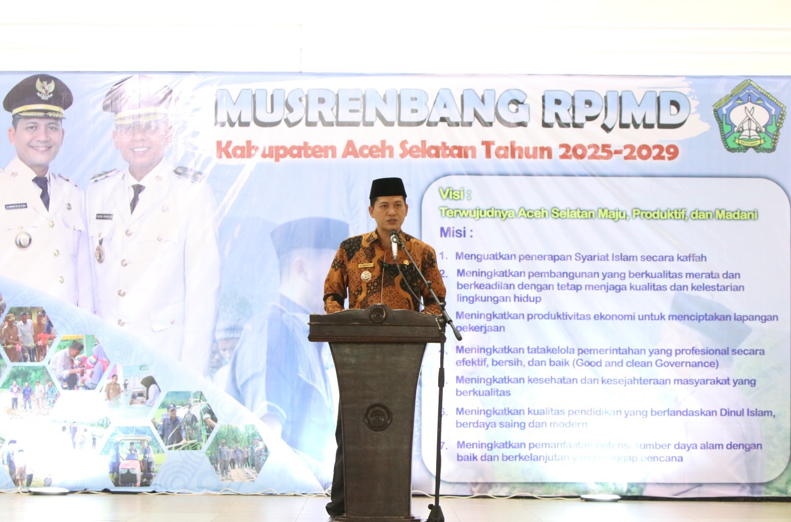 Tapaktuan, www.sinarpagiindonesia.com – Bappeda Aceh Selatan mengadakan Musyawarah Perencanaan Pembangunan (MUSRENBANG) RPJMD Kabupaten Aceh Selatan Tahun 2025-2029 kamis (24/7) di Rumah Agam dengan Visi terwujudnya Aceh Selatan Maju, Produktif dan Madani