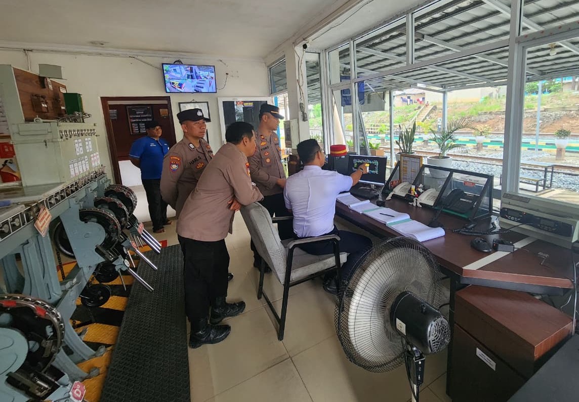Tak hanya memberikan imbauan, personel Sat Binmas juga meninjau langsung ruang kendali operasional stasiun dan berdialog dengan petugas jaga.