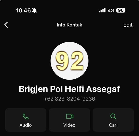 “Kami sedang menelusuri sumber nomor tersebut dan pihak yang menggunakannya. Setiap penyalahgunaan identitas pejabat negara akan ditindak sesuai hukum,” tegasnya.