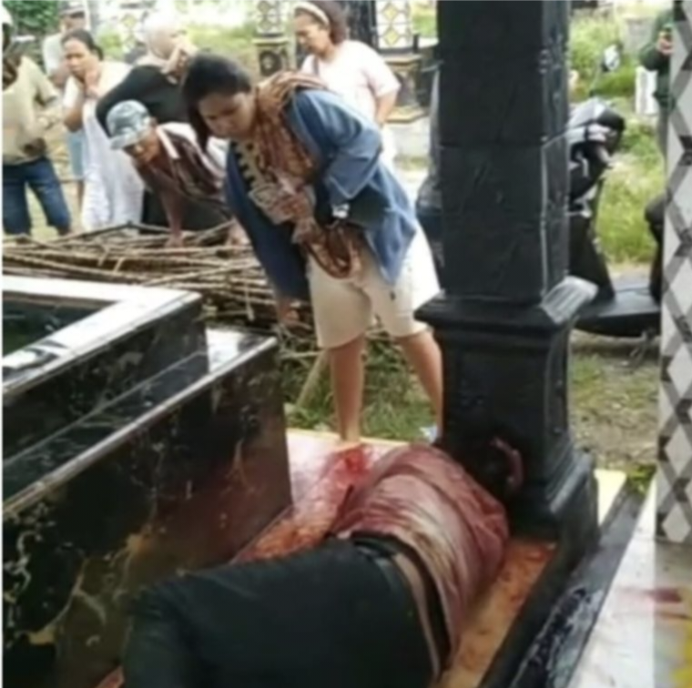 Informasi didapat, pria itu diketahui bernama M. Ginting warga Desa Cinta Damai, Kecamatan Patumbak, Kabupaten Deli Serdang. Korban yang diketahui bertubuh gemuk ini ditemukan terkapar tepat disamping makam ayahnya.Di bagian kepala M. Ginting terlihat ada empat luka robek diduga bekas bacokan senjata tajam. Pada wajahnya juga terlihat memar akibat pukulan.