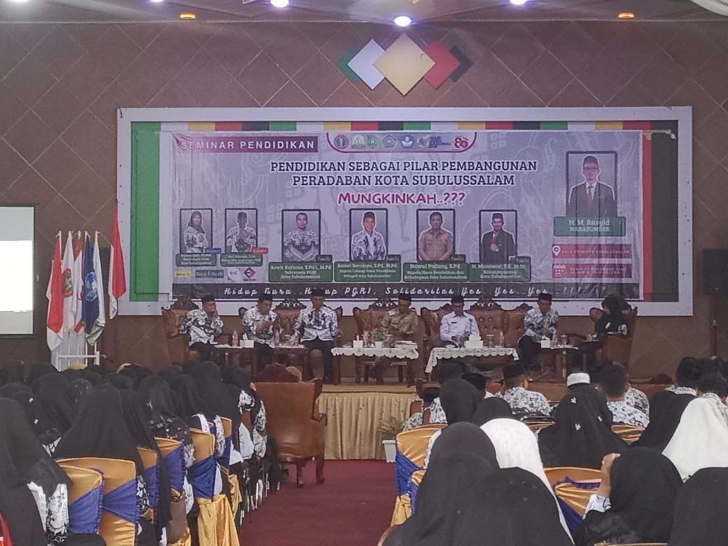 Hal ini disampaikan saat menjadi narasumber utama dalam Seminar Pendidikan bertema “Pendidikan sebagai Pilar Pembangunan Peradaban Kota Subulussalam” yang diselenggarakan oleh Persatuan Guru Republik Indonesia (PGRI) Kota Subulussalam di aula pendopo kota Subulussalam. Senin 24/11/2025.