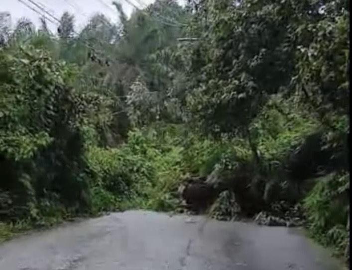 jalan lintas tersebut lumpuh total lantaran tertutup material tanah, dan pepohonan pukul 02:00 WIB tadi.