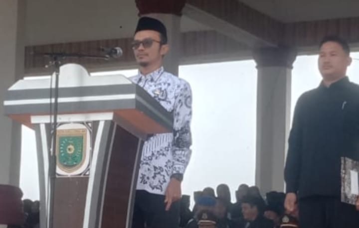 Dengan mengusung tema “Guru Hebat, Indonesia Kuat”, Wali Kota menyampaikan apresiasi tinggi kepada seluruh guru yang tetap hadir dan kompak mengikuti upacara dengan  semangat walaupun dalam di guyur hujan.