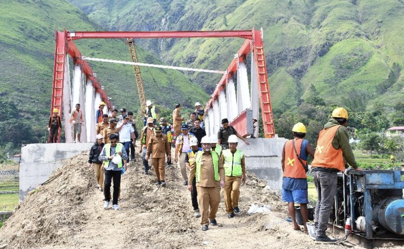 “Pembangunan jembatan ini merupakan bentuk sinergi pusat dan daerah. Abutment jembatan dibangun melalui APBD Kabupaten Samosir, sedangkan konstruksi jembatan dibiayai oleh Kementerian PUPR,” kata Vandiko saat melakukan monitoring pembangunan jalan dan Jembatan di Bonandolok, 23/12
