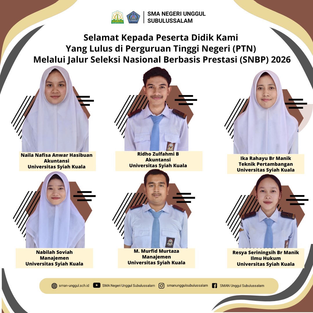 Dengan tren yang terus meningkat, SMAN Unggul Subulussalam optimistis mampu mempertahankan bahkan meningkatkan capaian di masa mendatang serta terus berkontribusi dalam mencetak generasi unggul dari daerah.