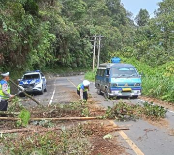 Pohon Tumbang Melintang di Jalan,Sat Lantas Polres Pakpak Bharat Gerak Cepat Evakuasi